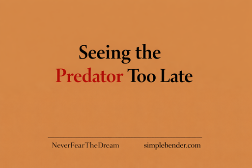 The harder question is not whether danger is present, but this: what discipline, honesty, and courage are required to pierce the veil of our own dichromacy before the predator is no longer merely stalking us, but consuming us?  NeverFearTheDream   simplebender.com